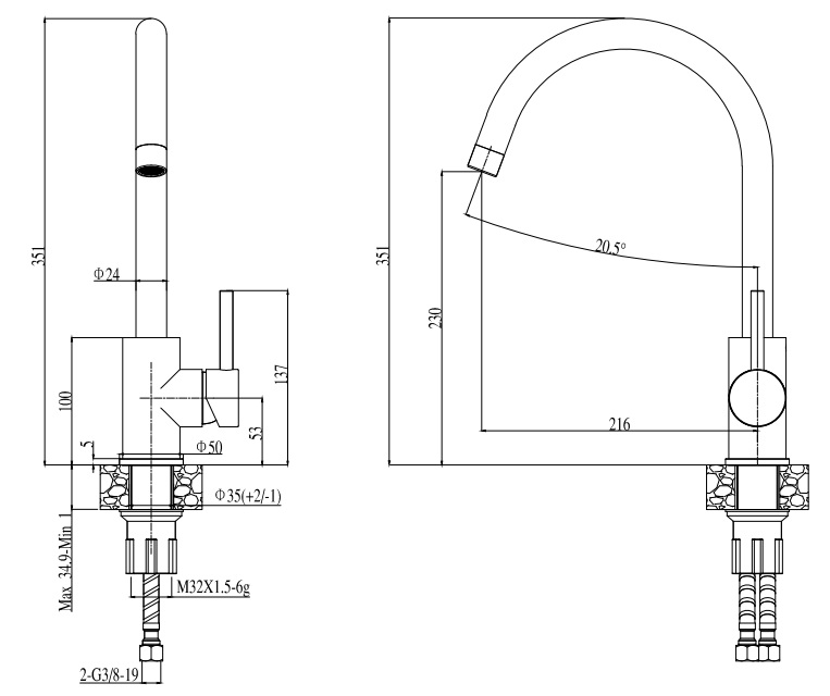 - montážní otvor o průměru 35 mm