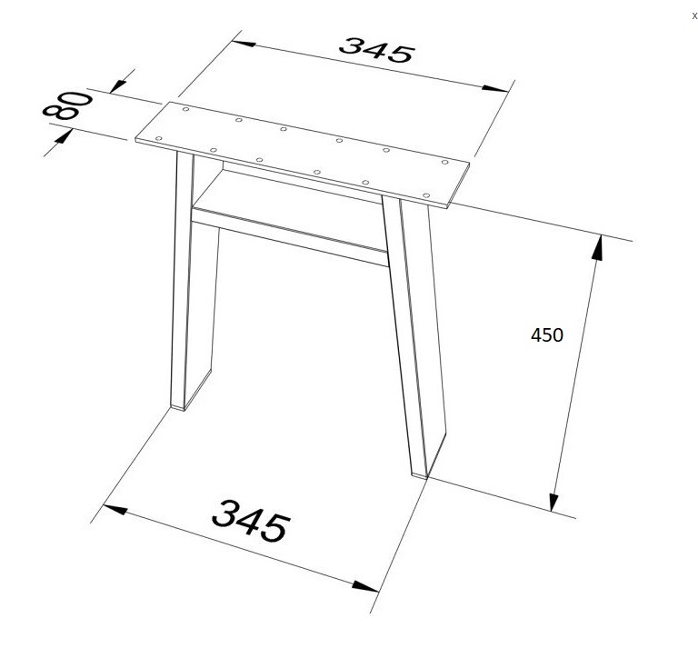 Stolová podnož ve tvaru H určená pro výrobu dřevěné lavice o výšce 450 mm.