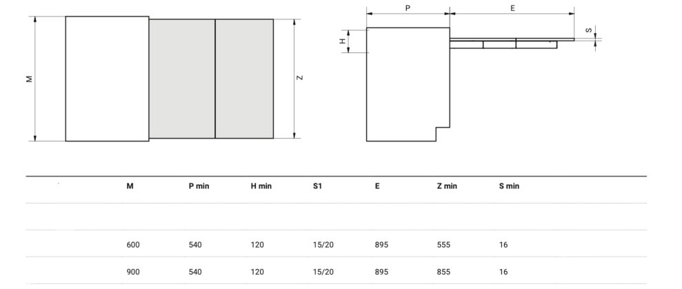 - určeno pro šířku skříně 600 a 900 mm
