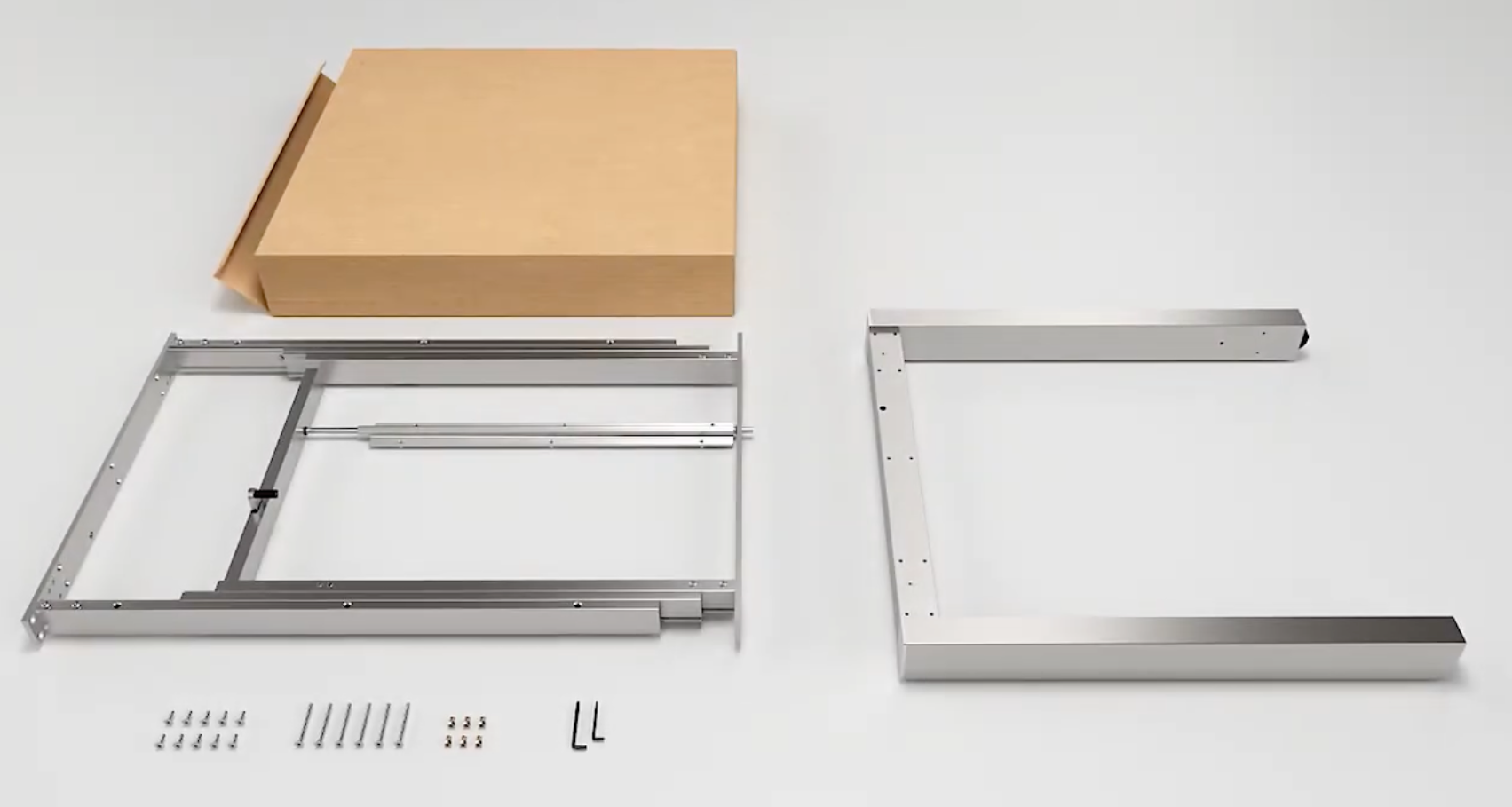 Komplet je dodávám se vším co potřebujete k montáži, neobsahuje samotnou stolovou desku.