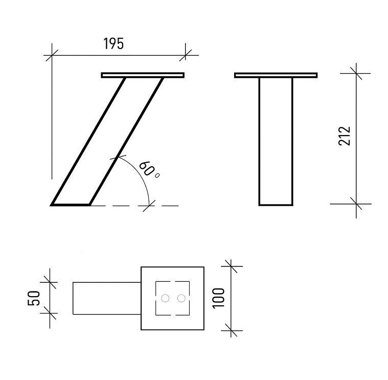- Barové konzoly šikmé 50x50 mm hliník výška 212 mm