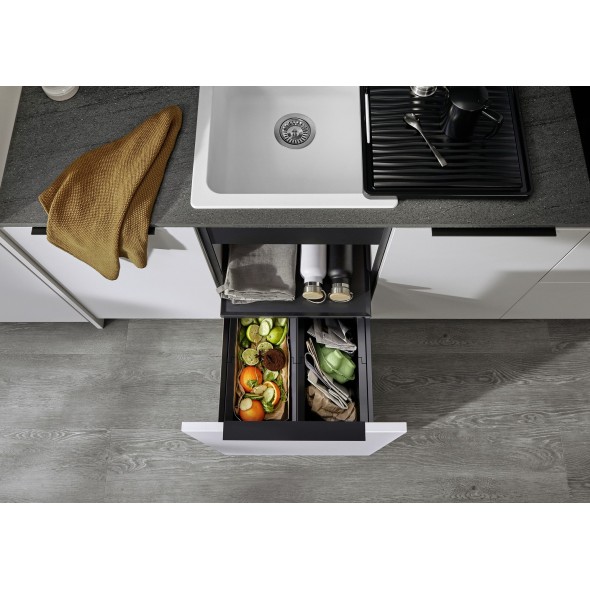 Systém je navíc vybaven skrytými madly, která jsou elegantně integrována do nádob koše pro jednoduchou manipulaci a vynášení odpadků. Rychlá a snadná montáž zaručuje jednoduchou instalaci, čímž se tento produkt stává ideálním řešením pro efektivní a stylové třídění odpadků.