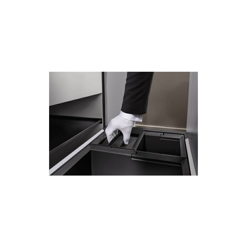 Odpadkový vestavěný koš s čelním výstupem pro odpadky, který přináší dokonalou kombinaci praktičnosti a moderního designu. S třemi nádobami o objemu 15 litrů přičemž každá poskytuje dostatek místa pro vaše odpadky. Blanco Flexon II se vejde do skříňky o šířce 60 cm. Kvalitní plnovýsuv s tlumením zajišťuje plynulý a bezproblémový provoz.