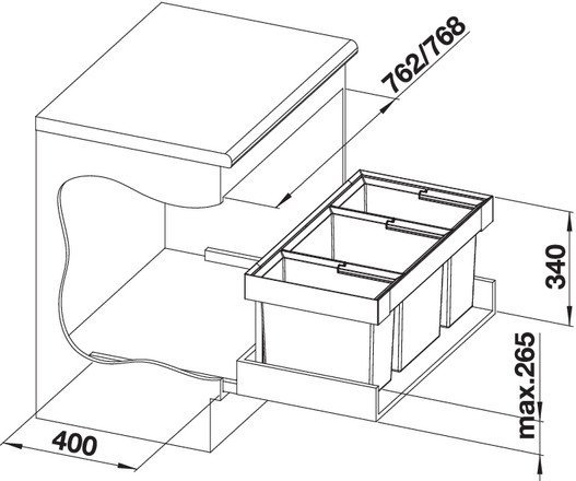 Odpadkový vestavěný koš s čelním výstupem, který přináší dokonalou kombinaci praktičnosti a moderního designu. S třemi nádobami o objemu 1x16, 1x19 a 1x30 litrů přičemž každá poskytuje dostatek místa pro vaše odpadky. Blanco Flexon II se vejde do skříňky o šířce 80 cm.