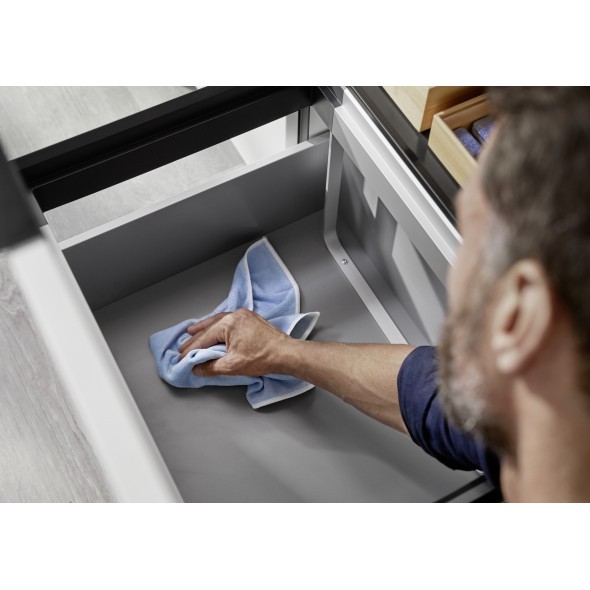 Jeho moderní design s integrovanou konstrukcí, která eliminuje zbytečné záhyby, efektivně brání znečištění. Snadno vyjímatelné víko zajišťuje jednoduché čištění všech částí, díky čemuž se daný koš udržuje v čistotě.