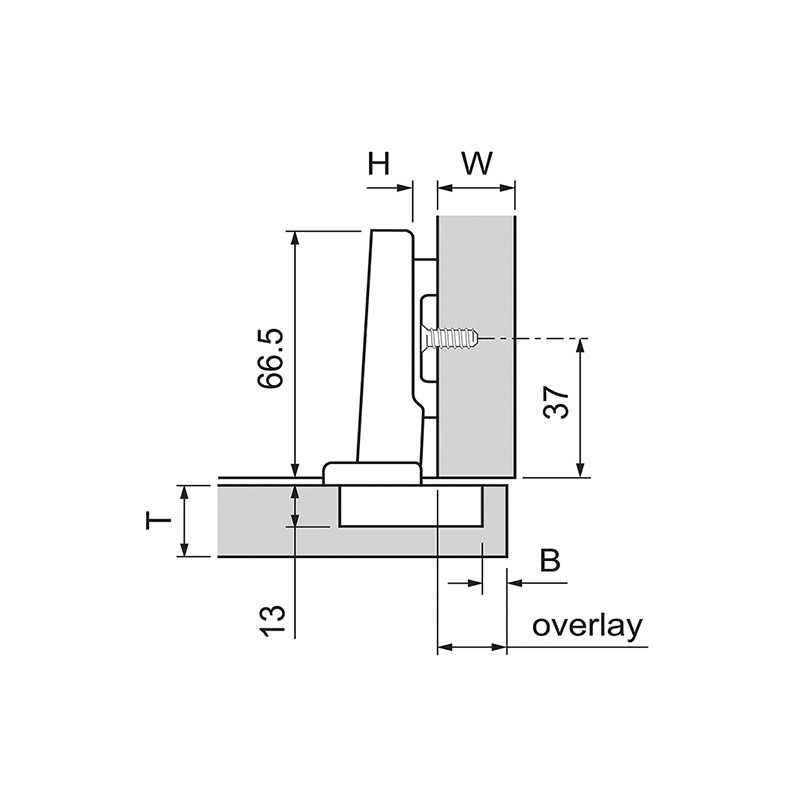 Clip Top závěs s úhlem otevření 110° naložený pro bezúchytkové otvírání dvířek TIP-ON.