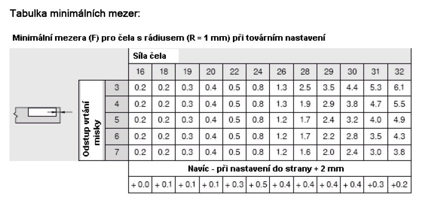 - otočný bod pro silná dvířka s malou minimální rezervou