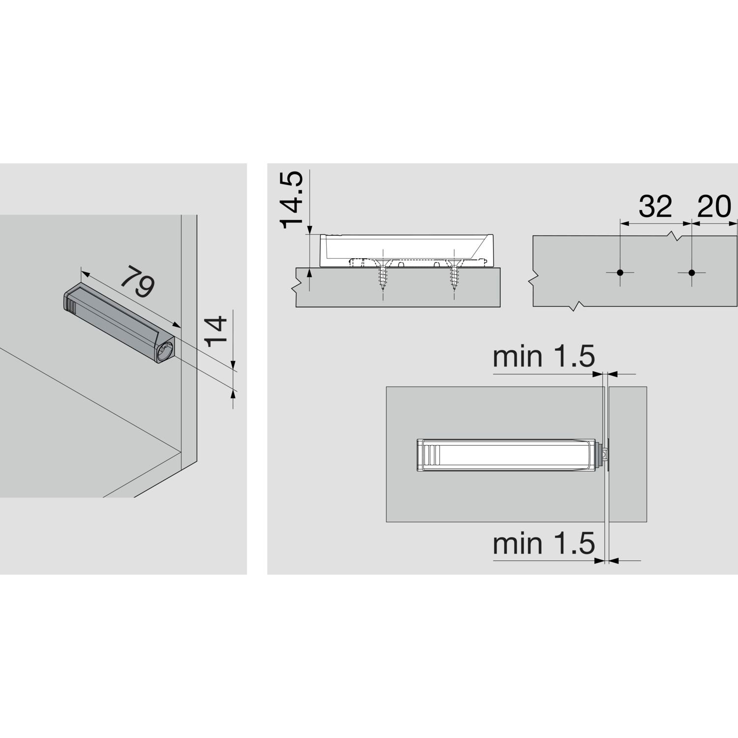 - BLUM 956A1201 TIP-ON přímý adaptér délka 76 mm šedý