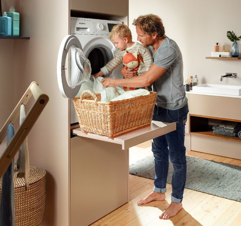 - Policový výsuv s aretací je vhodný pro police mezi pračkou a sušičkou,pod pracovní deskou