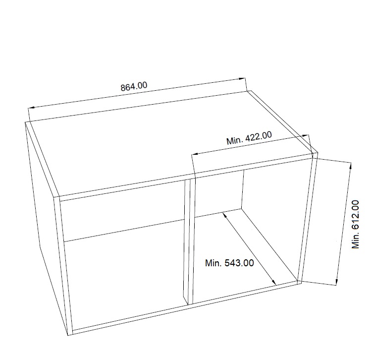 - Minimální vnitřní výška skříňky: 612 mm