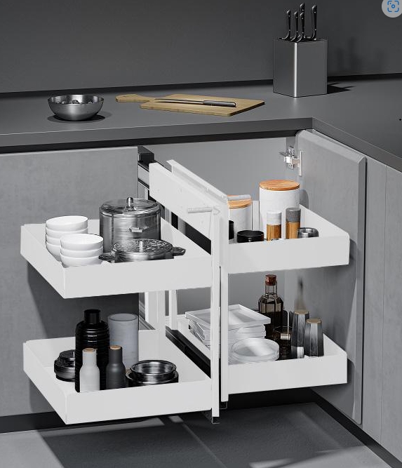 Maximální využití prostoru v rohové skříňce s plynulým dotlumení a moderním designem od firmy CEMUX.