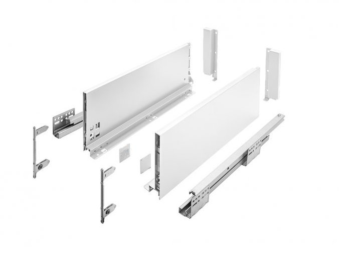 Zásuvku H Box SLIM s ultratenkou bočnicí o síle 12,8 mm a plnovýsuvem s dotlumením, využijete při výrobě šuplíků v kuchyni, ale i v koupelnách a obývacích prostorách.