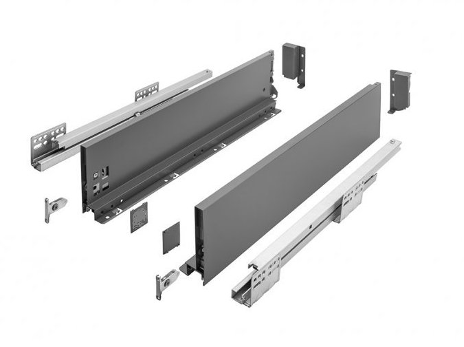 Zásuvka H Box SLIM s ultratenkou bočnicí a výsuvem TIP-ON pro bezúchytkové otvírání.