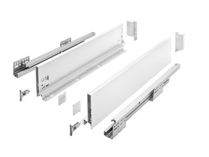 Zásuvka H Box SLIM s ultratenkou bočnicí a výsuvem TIP-ON pro bezúchytkové otvírání.