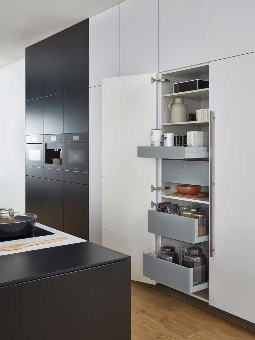 Cemux kování pro potravinovou skříň H Box SLIM v odstínu antracit, je určené pro výrobu vnitřních zásuvek s 1 nízkou a 4 vysokými šuplíky s prosklenými boky.