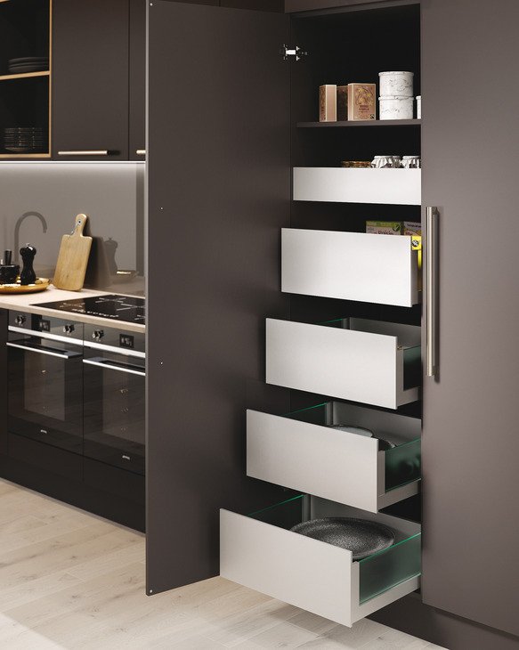 - Komplet kování pro potravinovou skříň zásuvky Cemux H Box skleněné bočnice