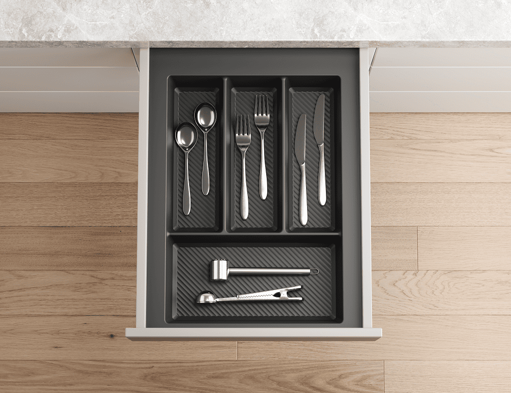 Příborník CEMUX STAR v barvě antracit je určený do zásuvky v kuchyni, pro přehledné rozdělení příborů, vařeček a dalších pomůcek.