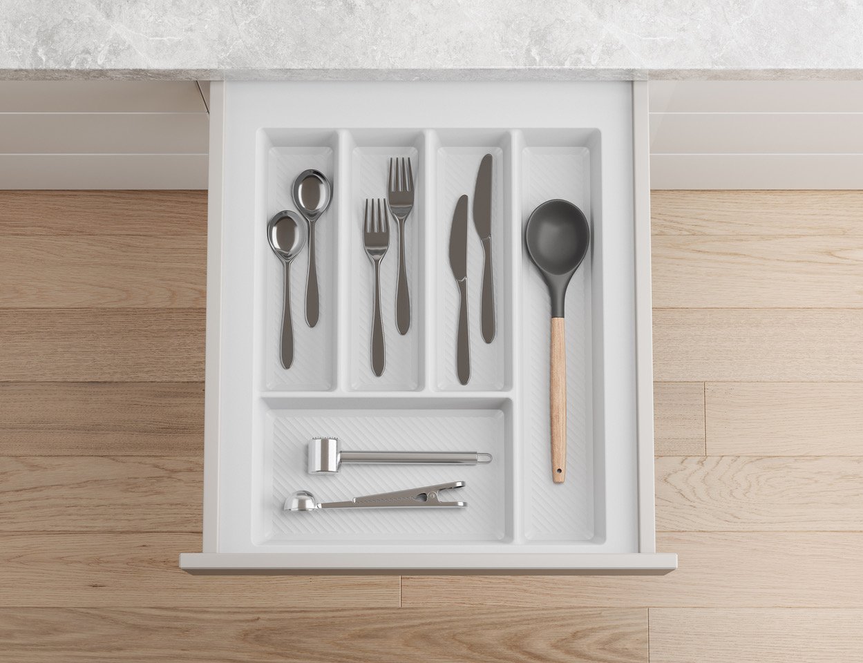 Příborník CEMUX STAR v barvě bílá je určený do zásuvky v kuchyni, pro přehledné rozdělení příborů, vařeček a dalších pomůcek.