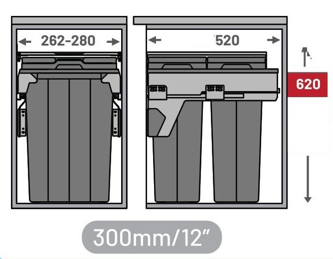 Výška koše je 620 mm s objemem 2 x 16 L.