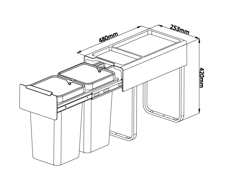 Po otevření dvířka, manuálně vysunete odpadkový koš.