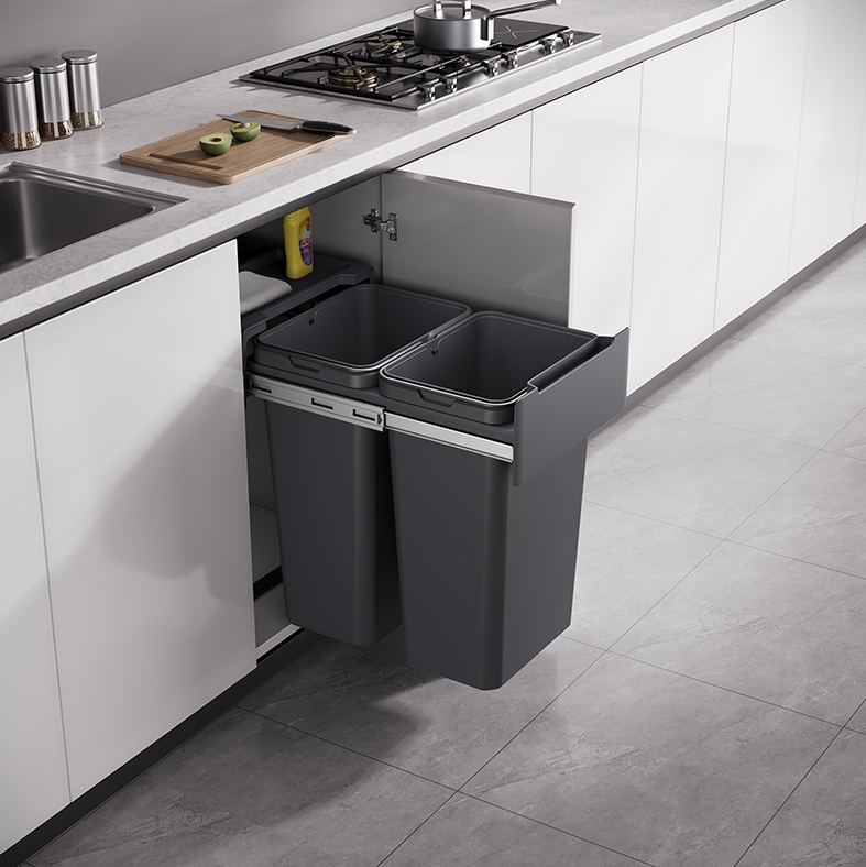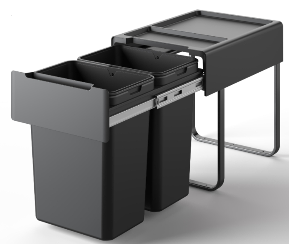 Odpadkový koš MEDIUM 40 s vlastním kuličkovým plnovýsuvem s tlumením.