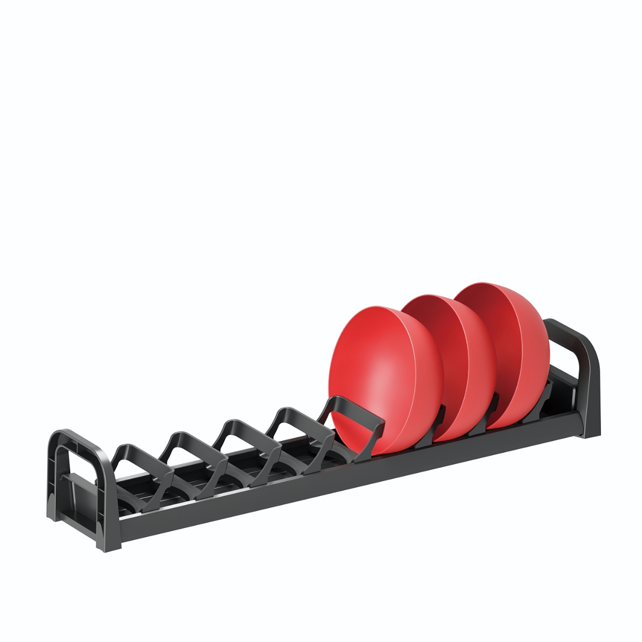 Praktický držák na misky s přizpůsobitelnými příčkami do zásuvek pro hloubku 500 mm. Držák je v šedém provedení a je vyroben z odolného plastu.