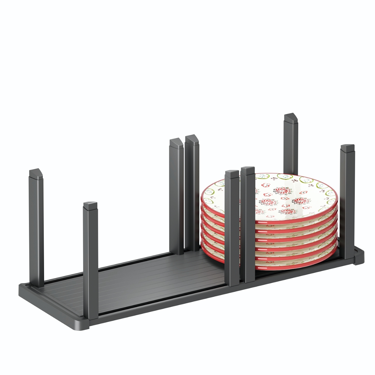 Praktický držák na talíře s přizpůsobitelnými příčkami do zásuvek pro hloubku 500 mm. Držák je v šedém provedení a je vyroben z odolného plastu.