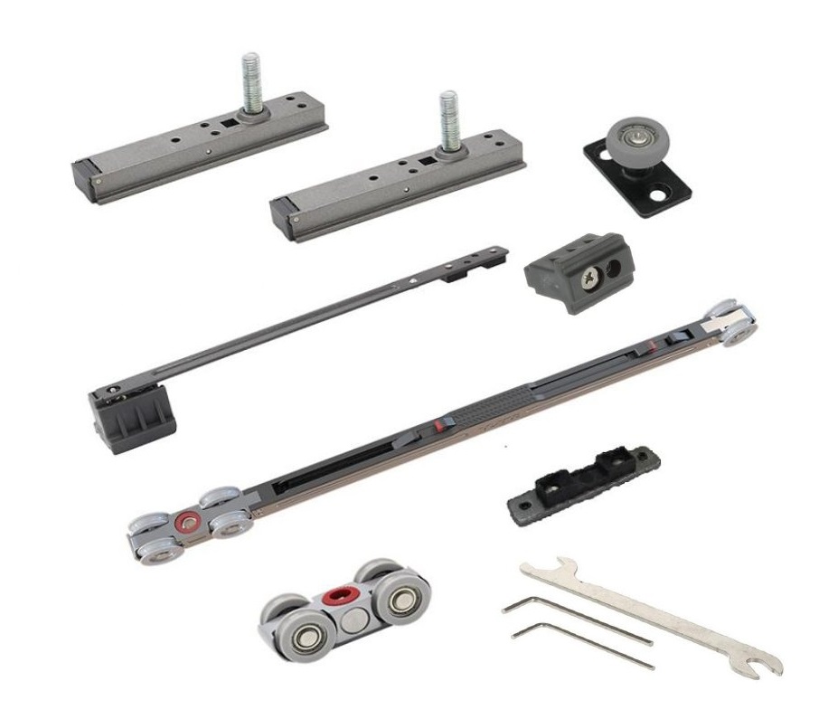 Sada kování pro 1 křídlo na 60 kg pro posuvné hliníkové rámové dveře od firmy Cemux STARSHIP s tlumením.