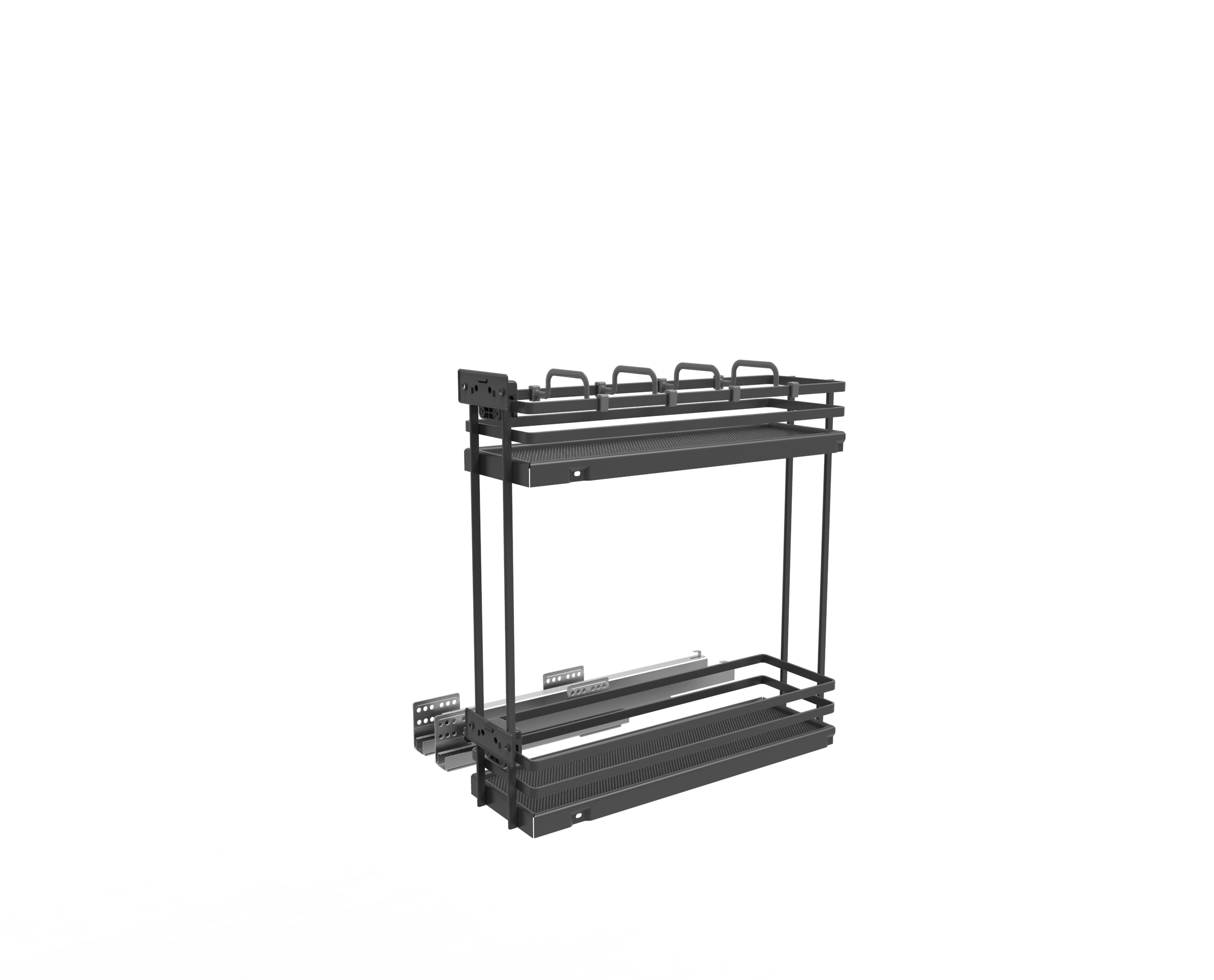 Plnovýsuvný dvojkoš boční s plným dnem určený do úzkých spodních skříněk v kuchyni.