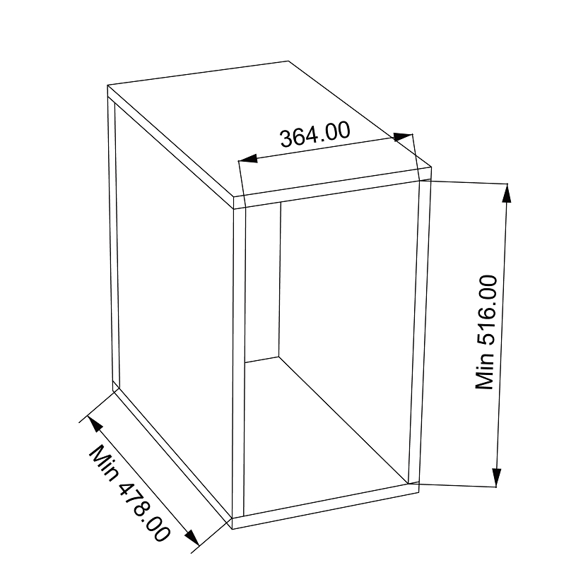 - Minimální vnitřní hloubka skříňky: 478 mm
