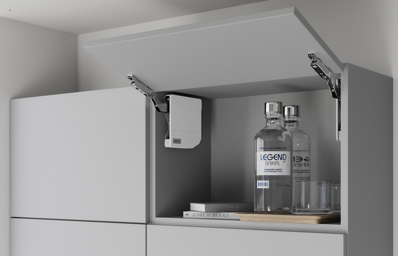 Výklop LIFT B střední využijete v kuchyni pro dvířka nad lednicí, nebo nad potravinovou skříní, dále v koupelnách a šatních skříních.