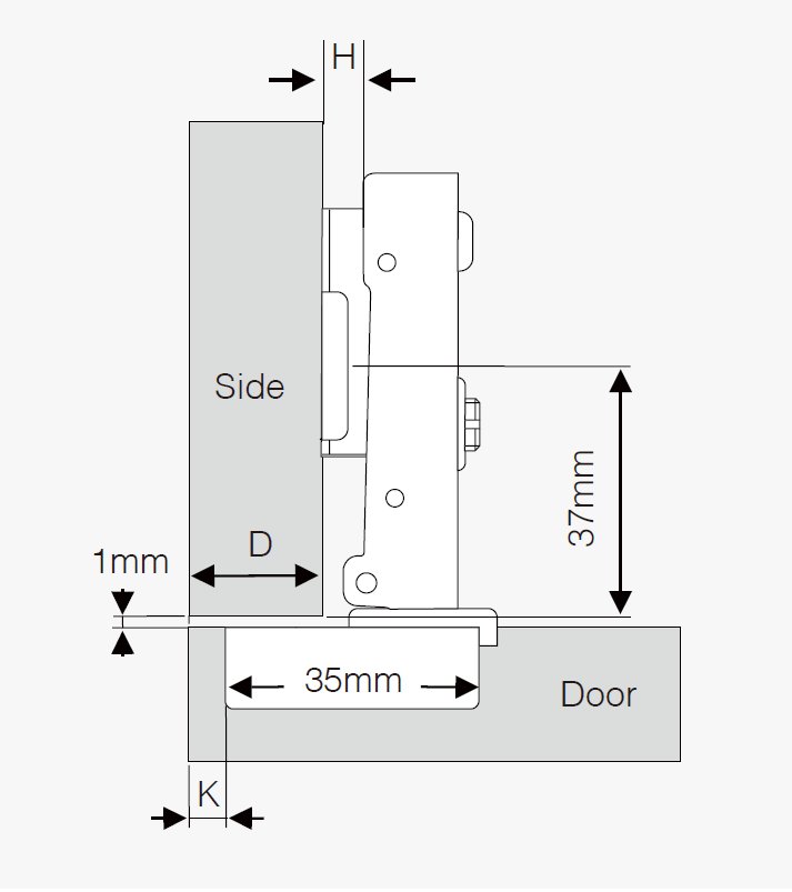 - 1 ks NK závěs naložený 105° s integrovaným tlumením, klipový a s excentrem