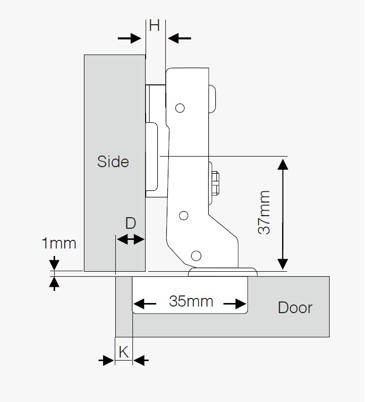 CEMUX NK závěs CLIP polonaložený 105° s integrovaným tlumením, excentrem a dvoudobým otevíráním, které zajišťuje zvýšení životnosti a spolehlivosti.
