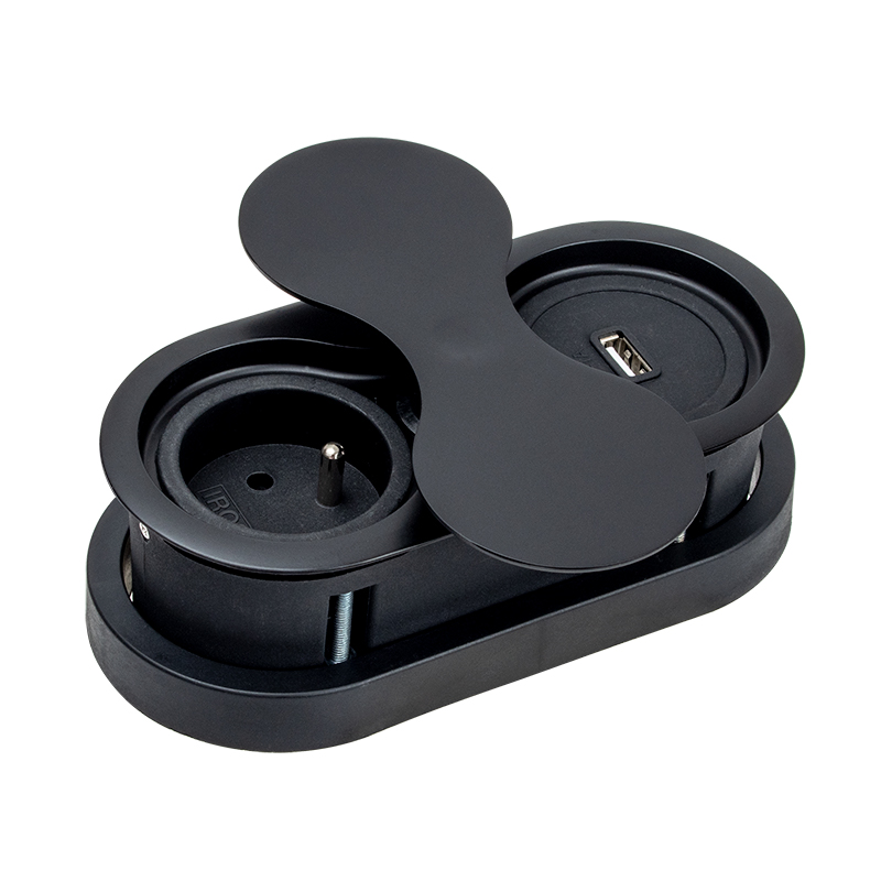 Design Light Elektro zásuvka EIGHT černá 1 x 230V + 1 x USB