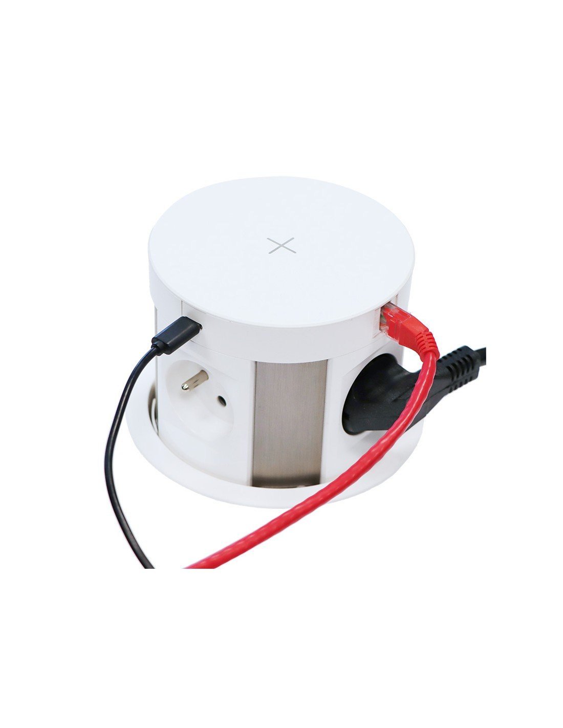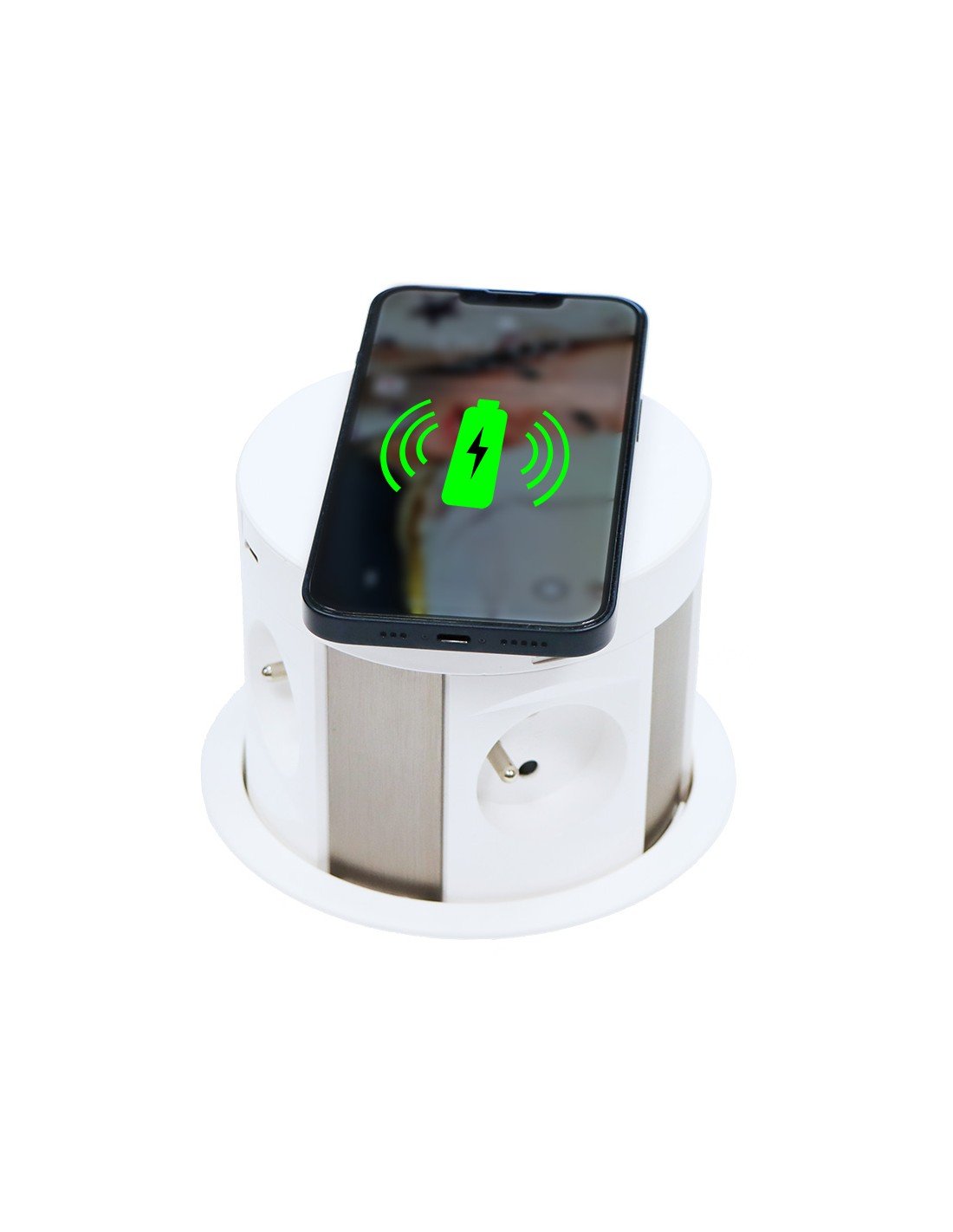 - předností zásuvky je bezdrátová indukční nabíječka, která je na vrchní ploše zásuvky