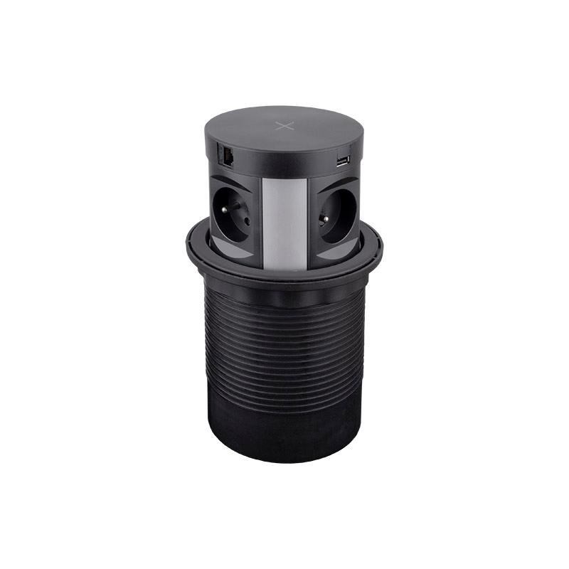 Design Light MULTI BOX výsuvná zásuvka 4x230V, 2xUSB A/C+ 2x RJ45,indukce,černá
