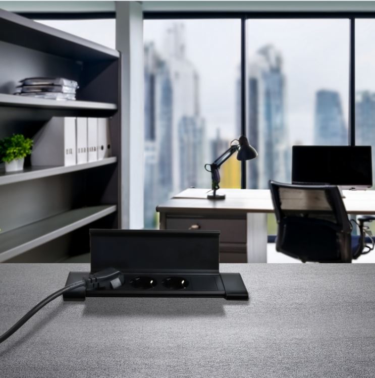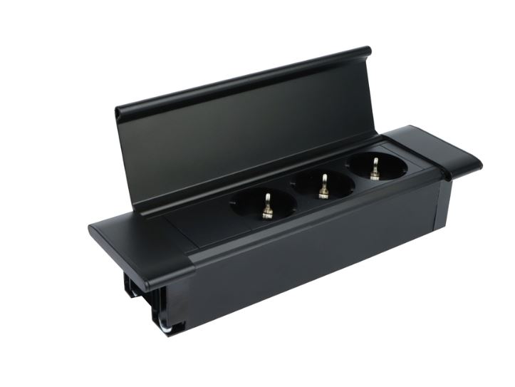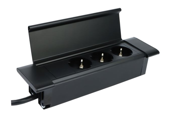 Otevírací víko umožňuje snadný přístup k zásuvkám - 3x 230V zásuvka Schuko.