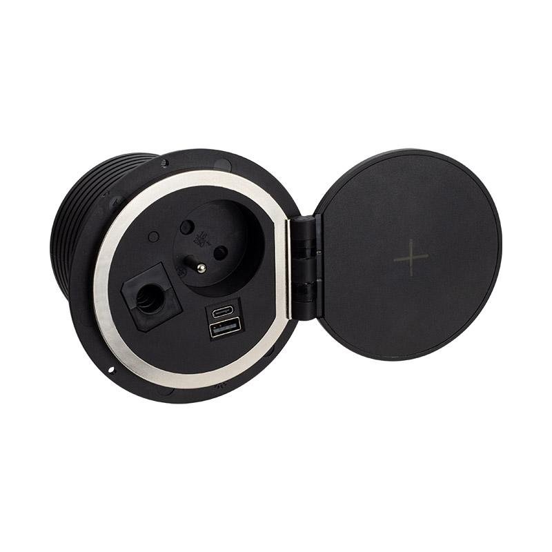 Design Light SAMBO BOX zápustná zásuvka 1 x 230V, 2 x USB + 1 x RJ45,indukce, černá