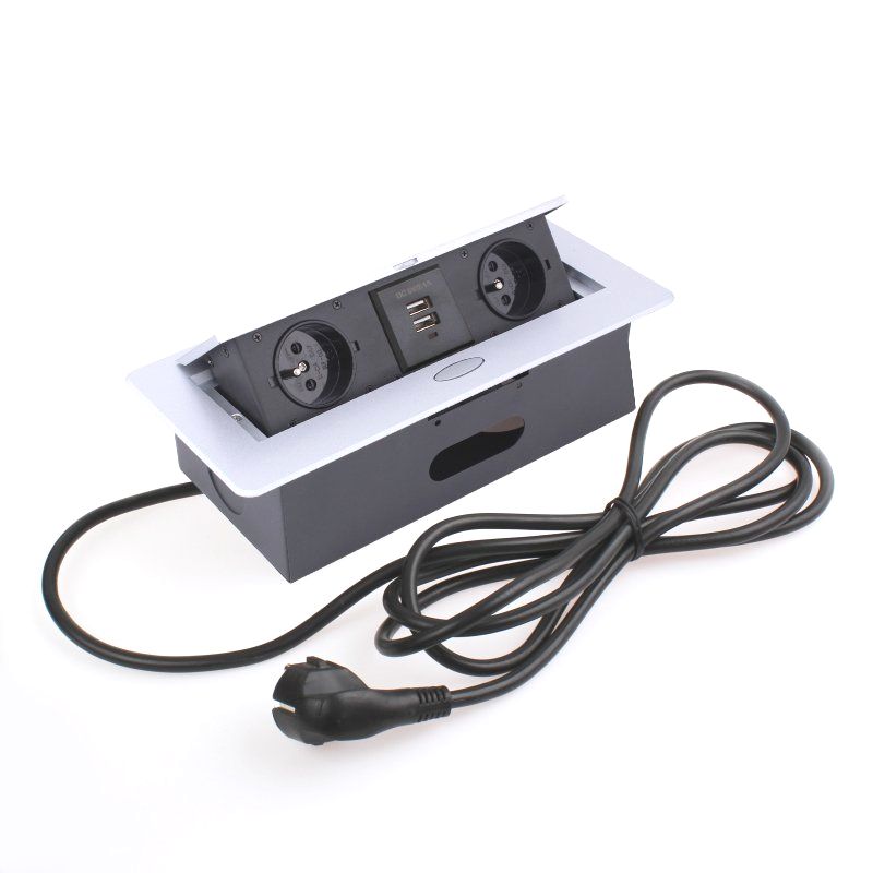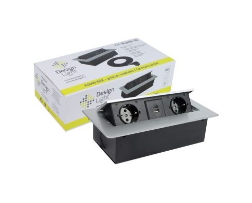 Design Light výklopná zásuvka BOX 2x 230V a 2x USB nabíječka s 3 m kabelem hliník