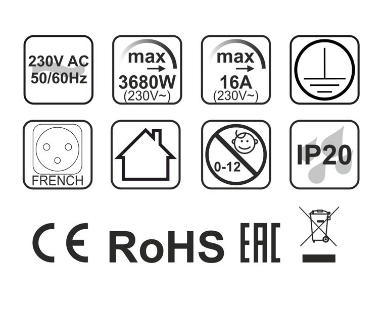 - výklopná 3 zásuvka s kabelem 1,5 m a uzemněním