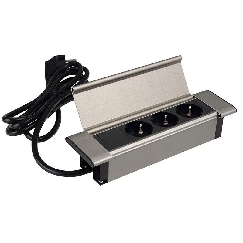 Design Light otevírací zásuvka FLATBOX 3x 230V nerez broušená