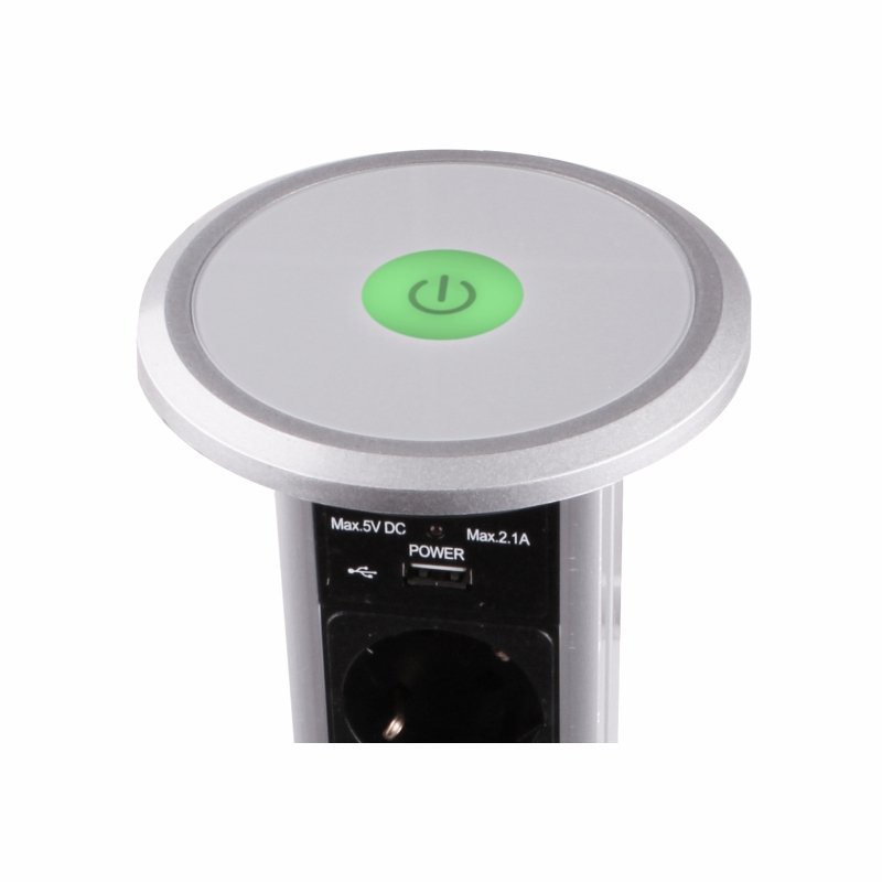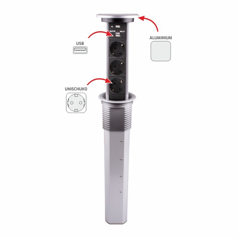Design Light elektricky výsuvná zásuvk BOX 3x230V + 2xUSB,indukce, hliník