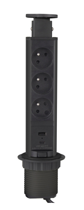 - Design Light zásuvka elektro stolová výsuvná věž 60mm- 3x zásuvka+2xUSB A/C černá