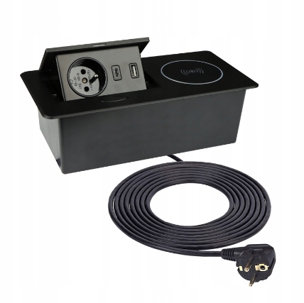 Design Light ZEOBOX výklopná zásuvka 1 x 230V, 2 x USB A/C,indukce,černá