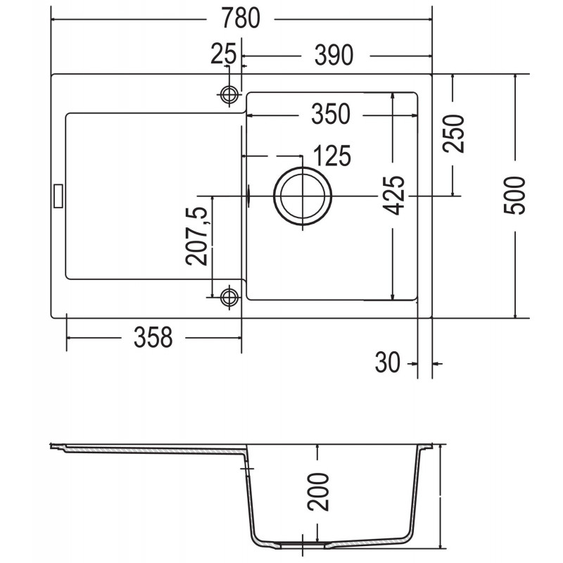 Dřez: 350 x 425 mm