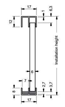 DURUS Willach dolní kluzný plast na sklo 6 mm- 2,5 m