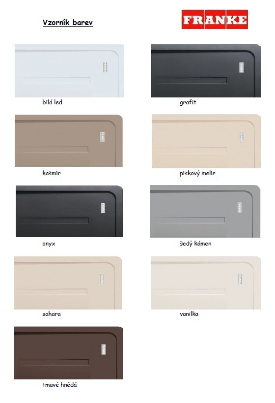 Bílá, Černá, Černá metalická, Písková, Šedá, Šedobéžová
