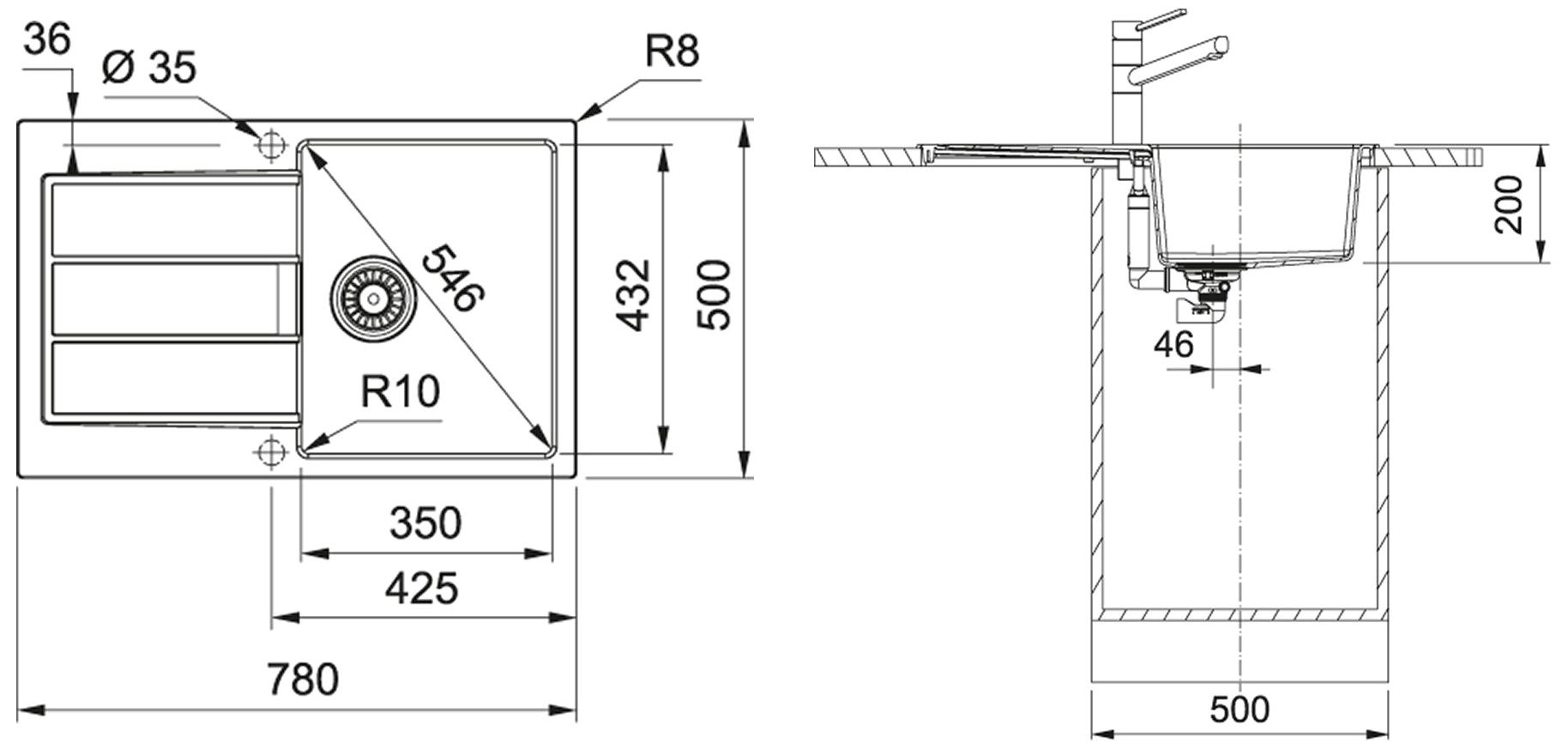 Rozměr dřezové nádoby: 350 x 400 x 180 mm