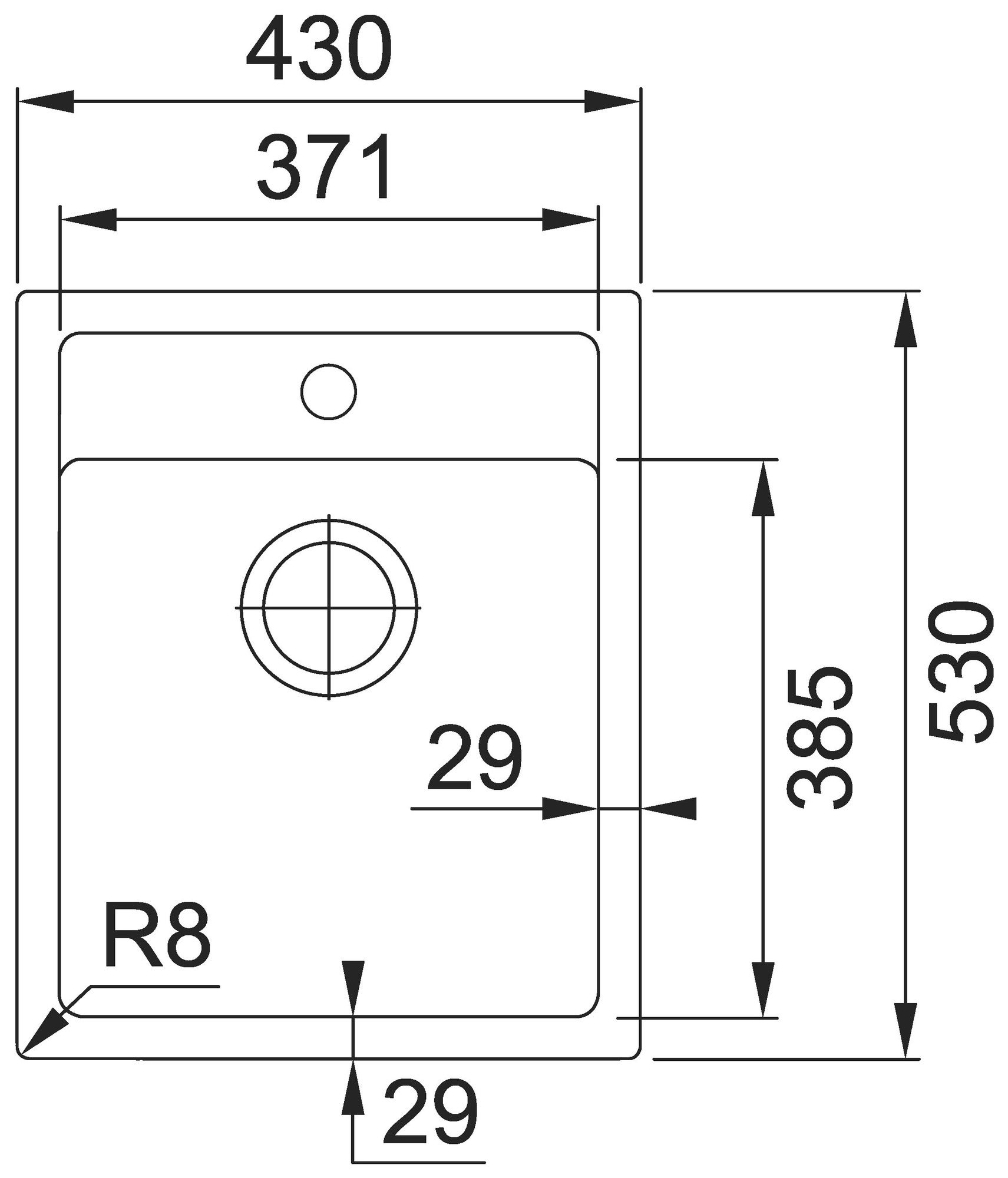 Dřez: 571 x 385 mm