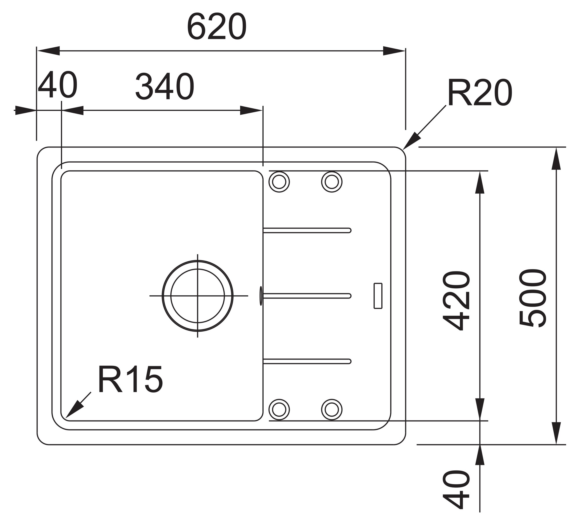 Výřez: 600 x 480 (rádius 20) mm